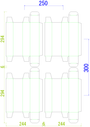 例:この抜き型は「左右250送り・天地300送りで田の字4面付」などと使う。