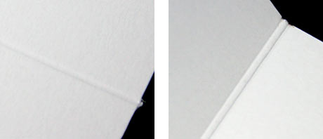 左:スジが凹んでいる方が山折り側/右:スジが凸んでいる方が谷折り側