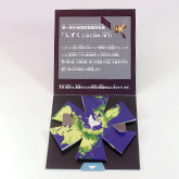 | 用途 | 第一期水循環変動観測衛星「しずく」の活動PR用として無料配布したオリジナルデザインの“パカポン”。 “パカポン”(PACK A PON)とは、厚さ1cmにも満たない封筒から20cm近いオブジェがポンと飛び出す、新しいタイプのギフトカードです。詳しくはこちら → http://www.packapon.com/ |
